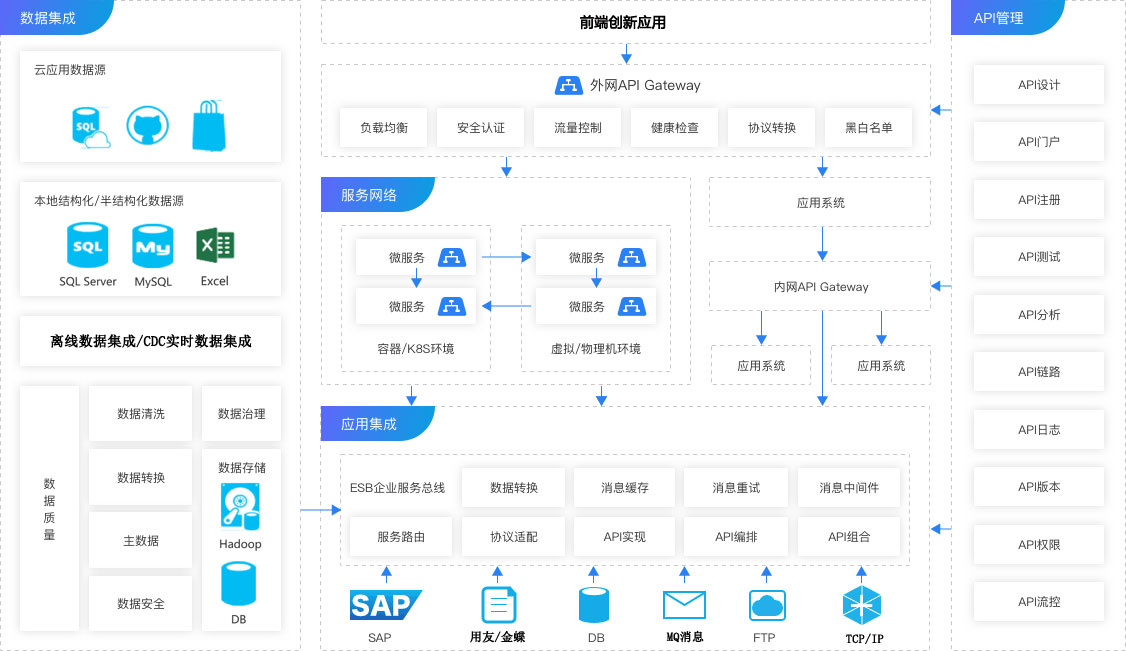 融合了API集成、应用集成、数据集成、微服务集成等能力